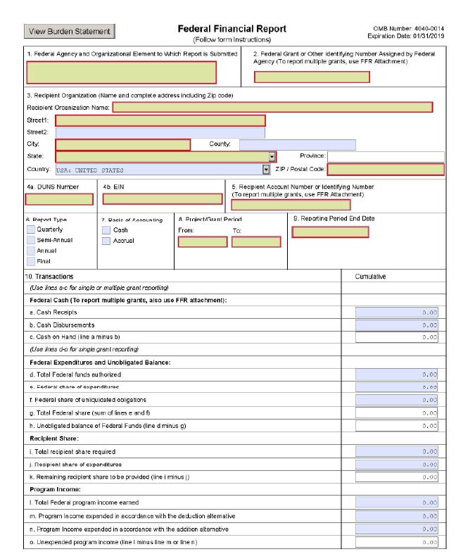 Below is a brief overview of significant fields of SF-425. A form will be completed for each AMP for each grant year